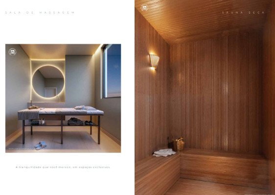 * Bem-estar: Academia, espaço de beleza, sauna e piscina para relaxar e cuidar da saúde.
