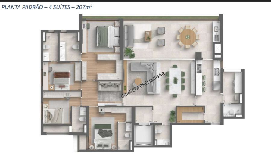 • 207m² | 4 suítes, 3 vagas; (5º ao 27º andar);