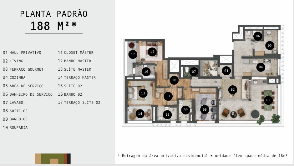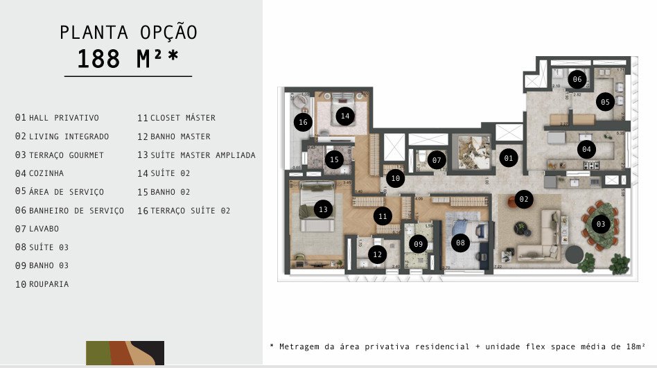 - Área Privativa: 188 m²